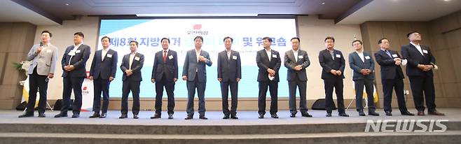 왼쪽부터 원강수 원주시장, 이상호 태백시장, 신영재 홍천군수, 서흥원 양구군수, 김명기 횡성군수, 최문순 화천군수, 이현종 철원군수, 심규언 동해시장, 김진하 양양군수, 최명서 영월군수, 김홍규 강릉시장, 이병선 속초시장, 박상수 삼척시장.
