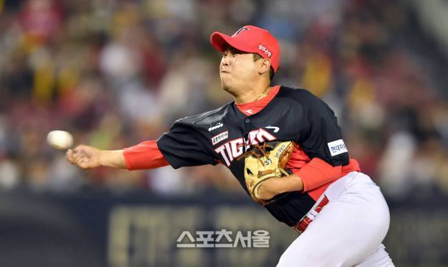 KIA 우완 박준표가 24일 잠실구장에서 열린 2022프로야구 두산베어스와 KIA타이거즈의 경기 8회말 역투를 펼치고 있다.2022.6.23.