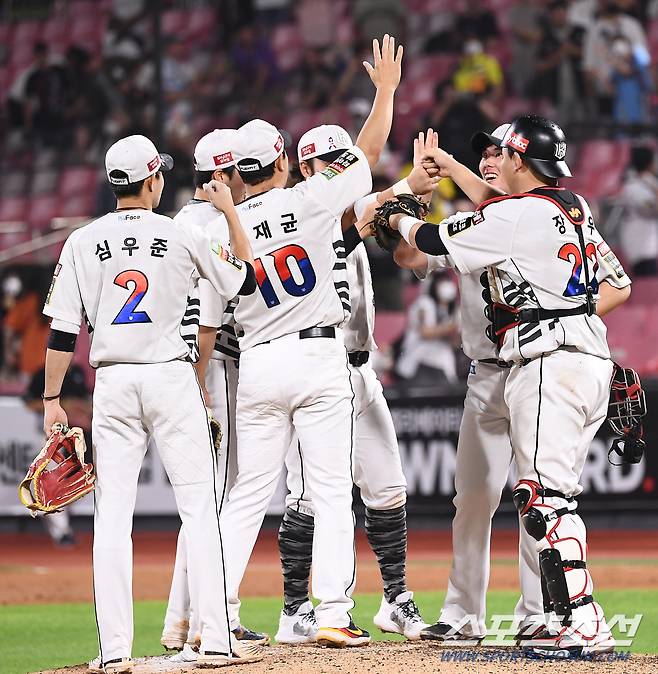 2022 KBO리그 KT 위즈와 LG 트윈스의 경기가 24일 수원 KT위즈파크에서 열렸다. 경기에서 승리한 KT 선수들이 기뻐하고 있다. 수원=박재만 기자 pjm@sportschosun.com/2022.06.24/