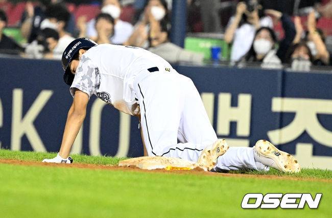 8회말 2사 1루에서 두산 안재석이 2루땅볼에 헤드퍼스트 슬라이딩으로 1루에서 세이프되고 있다. 2022.06.24 /jpnews@osen.co.kr