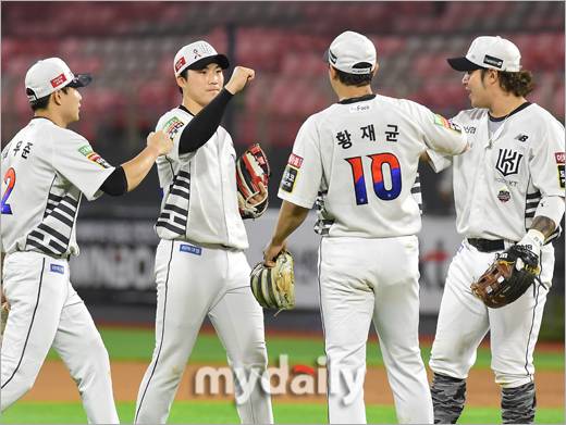 KT 장준원이 7회 연타석 홈런을 친 후 심우준이 백투백 홈런을 기록하며 동점을 만들었다. 이어 장성우가 역전 2타점 적시타를 기록했다.- ⓒ마이데일리(www.mydaily.co.kr). 무단전재&재배포 금지 -