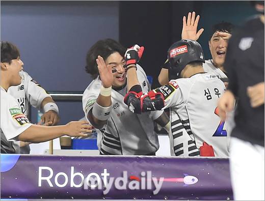 [KT 심우준이 24일 오후 경기도 수원KT위즈파크에서 '2022 신한은행 SOL KBO리그' LG 트윈스-KT 위즈 경기 7회말 1사에 백투백 동점 솔로포를 쳤다. 심우준에 앞선 타석에 장준원도 솔로포를 기록했다. 사진 = 수원 한혁승 기자 hanfoto@mydaily.co.kr]- ⓒ마이데일리(www.mydaily.co.kr). 무단전재&재배포 금지 -