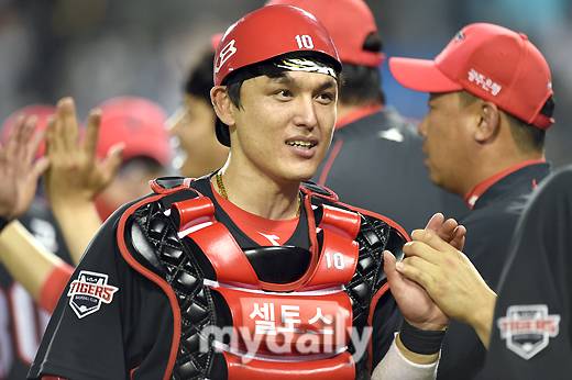 [마이데일리 = 유진형 기자] KIA 박동원이 24일 오후 서울 잠실야구장에서 진행된 '2022 신한은행 SOL KBO리그' KIA 타이거즈와 두산 베어스의 경기에서 4-3으로 승리한 뒤 기뻐하고 있다.