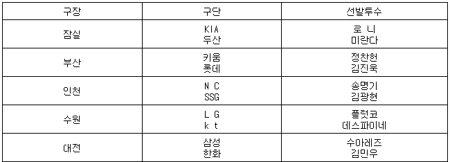 [프로야구] 25일 선발투수