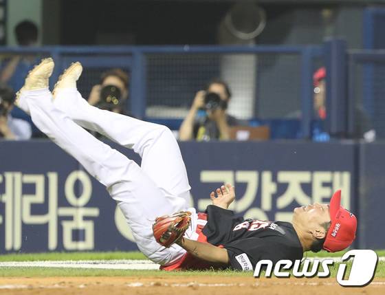 9회말 2사 1,2루상황 KIA 장현식이 강승호의 뜬 공을 잡아내며 팀의 승리를 이끌고 있다. 2022.6.24/뉴스1