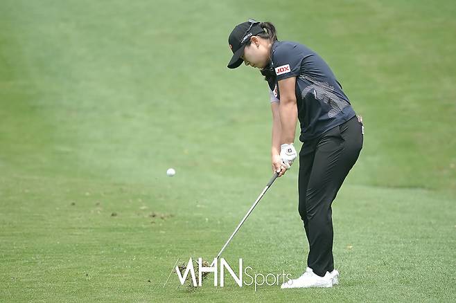 홍정민(20.CJ온스타일)이 1번홀 서드샷을 날리고 있다.