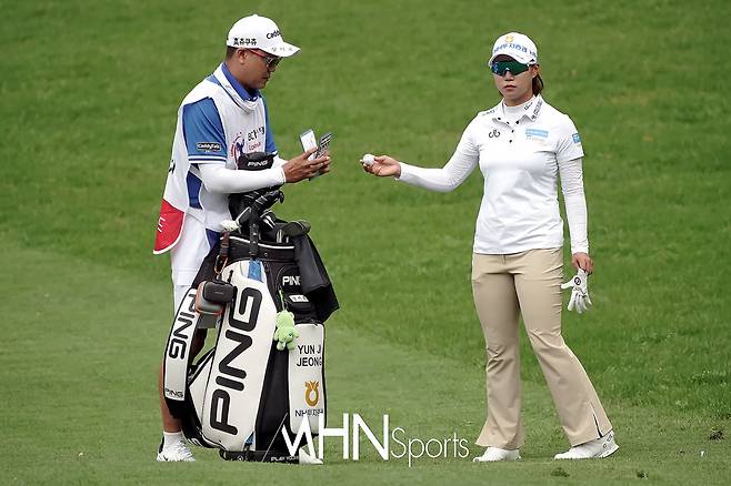 정윤지(22.NH투자증권)가 1번홀 서드샷을 준비하고 있다.