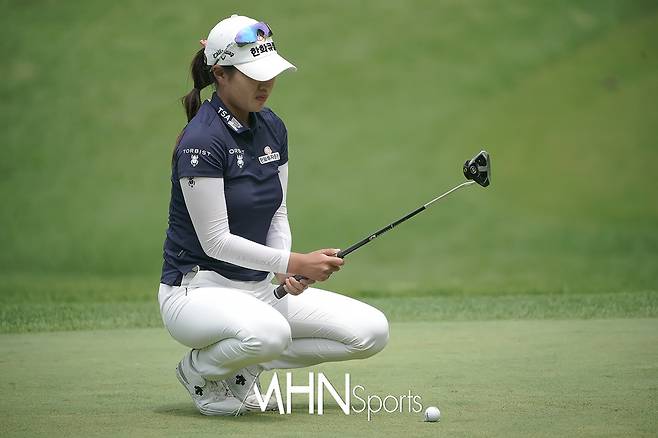 성유진(22.한화큐셀)이 1번홀 그린에서 버디 퍼트를 준비하고 있다.