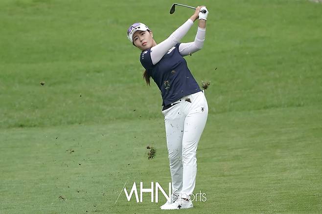성유진(22.한화큐셀)이 1번홀 서드샷을 날리고 있다.