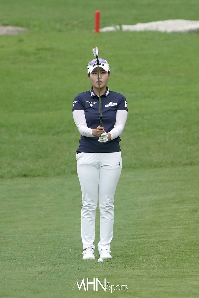 성유진(22.한화큐셀)이 1번홀 서드샷을 준비하고 있다.