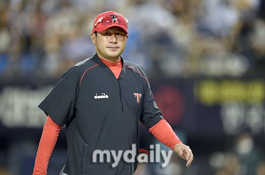 [마이데일리 = 유진형 기자] KIA 서재응 투수코치가 24일 오후 서울 잠실야구장에서 진행된 '2022 신한은행 SOL KBO리그' KIA 타이거즈와 두산 베어스의 경기 6회말 투수교체를 지시한 뒤 더그아웃으로 들어가고 있다.