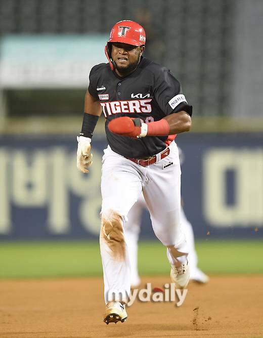 [마이데일리 = 유진형 기자] KIA 2루주자 소크라테스가 24일 오후 서울 잠실야구장에서 진행된 '2022 신한은행 SOL KBO리그' KIA 타이거즈와 두산 베어스의 경기 5회초 무사 2루서 나성범의 우익수 플라이때 3루로 뛰고 있다.