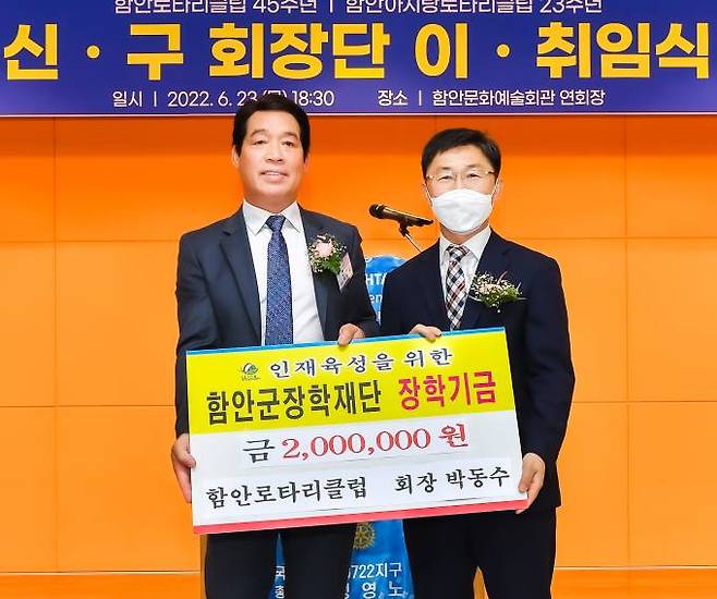 함안로타리클럽과 함안아시랑로타리클럽은 23일 오후 함안문화예술회관에서 함안로타리클럽창립 제45주년, 함안아시랑로타리클럽 창립 제23주년 기념식 및 회장 이취임식을 개최했다.