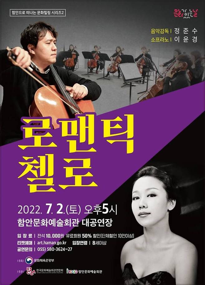 함안문화예술회관에서는 ‘로멘틱 첼로’ 공연을 오는 7월2일 오후 5시 함안문화예술회관 대공연장에서 선보인다.