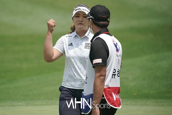 유해란(21.다올금융그룹)이 1번홀 그린 버디를 성공시키고 있다.