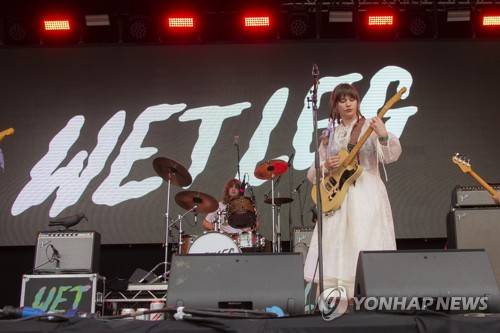 of the band 'Wet Leg', performs at the Glastonbury Festival in Worthy Farm, Somerset, England, Friday, June 24, 2022. (Photo by Joel C Ryan/Invision/AP) 062322128124, 21334631,