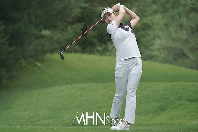 허다빈(24.한화큐셀)이 2번홀 티샷을 날리고 있다.