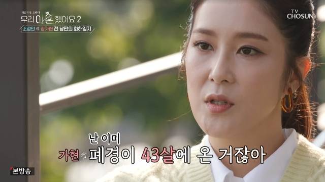 장가현 "43살 이미 폐경, 산후조리 못 한 후유증"(우리 이혼했어요2)