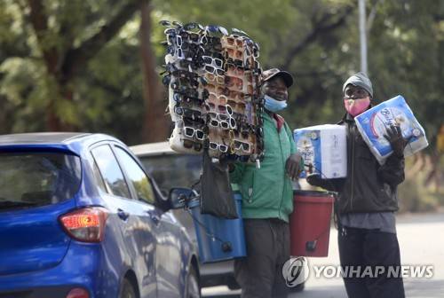 epa10032031 Vendors sell wares to passing motorists in Harare, Zimbabwe, 24 June 2022. Due to the lack of jobs in the formal sector many people have been forced into vending to fend for their families. EPA/AARON UFUMELI