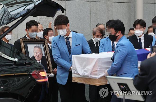 (서울=연합뉴스) 박동주 기자 = 조순 전 경제부총리의 발인식이 25일 오전 송파구 서울아산병원 장례식장에서 엄수되고 있다. 2022.6.25