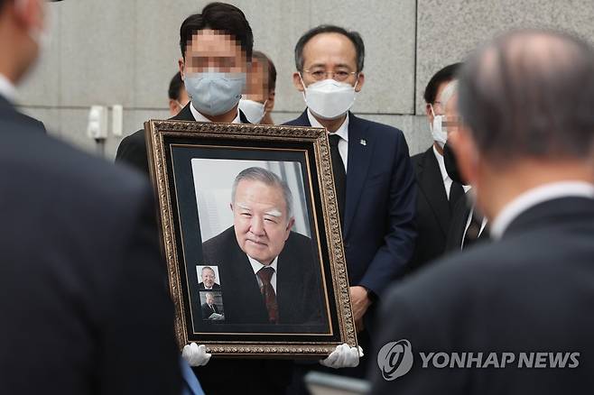 (서울=연합뉴스) 박동주 기자 = 25일 오전 송파구 서울아산병원 장례식장에서 엄수된 조순 전 경제부총리의 발인식에 추경호 부총리 겸 기획재정부 장관이 참석해 있다. 2022.6.25