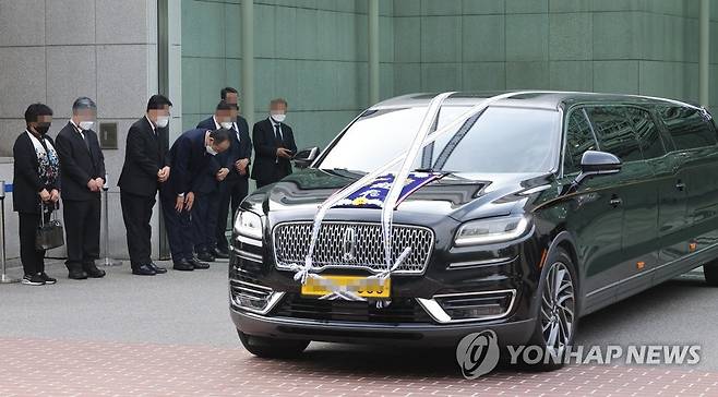 (서울=연합뉴스) 박동주 기자 = 조순 전 경제부총리의 발인식이 25일 오전 송파구 서울아산병원 장례식장에서 엄수되고 있다. 2022.6.25