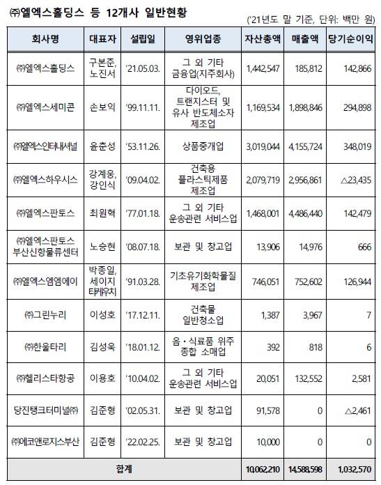 LX그룹의 자산총액은 2020년 말 8조930억원 규모에서 지난해 말 10조622억원으로, 1년새 24% 늘었다. 공정위 기업집단 지정 기준 재계 순위로 따지면 46위 수준이다. 현재 46위는 한국타이어(10조150억원)다.