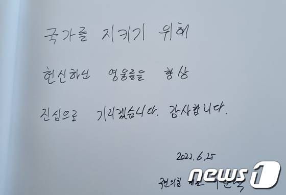 사진은 이 대표가 참배 후 남긴 방명록. 2022.6.25/뉴스1