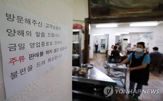 (서울=연합뉴스) 임헌정 기자 = 25일 서울 중구 을지면옥에 영업종료 안내문이 붙어 있다.