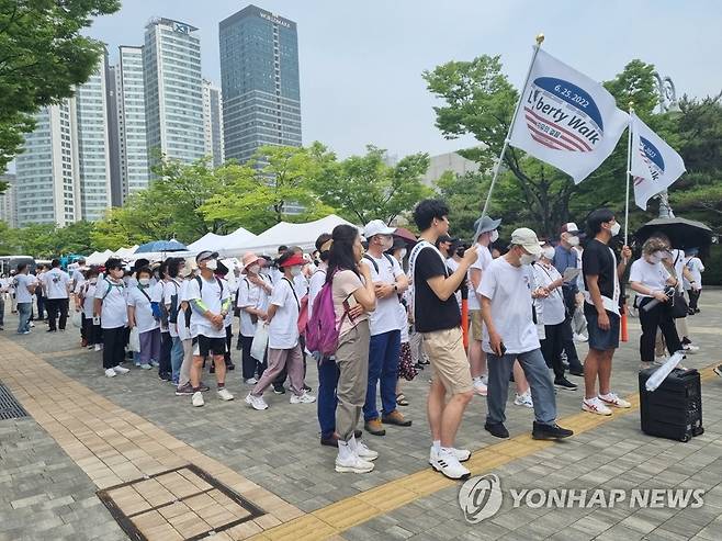 미국에서 처음 시작된 '리버티 워크' 는 미국의 비영리 단체 '6.25재단'이 한국전쟁에 참전한 미국 군인들의 숭고한 희생을 알리기 위해 2018년부터 매년 6월 25일에 개최하는 걷기 행사다. 2022.6.25