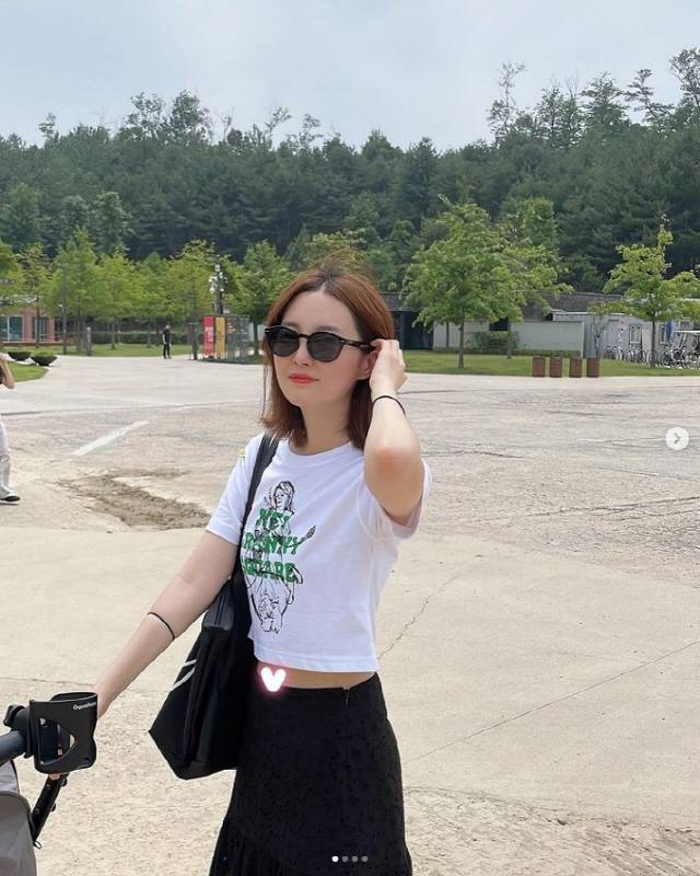 공개된 사진 속 김소영은 딸과 함께 나들이에 나선 김소영의 모습이 담겼다. 특히 김소영은 크롭티를 입고 있지만 배꼽 위치에 스티커를 붙여 눈길을 끈다. 그는 "고조선인도 크롭티를 입을 수 있다"이라고 설명해 웃음을 자아냈다.