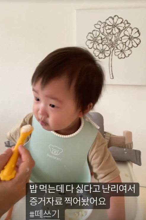 이어 한지혜는 "예쁘게 먹어주세요. 밥 먹는데 싫다고 난리여서 증거자료 찍어놨어요 #떼쓰기"라고 덧붙였다.