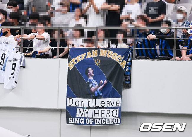 인천 팬들이 오전 J리그 이적설 불거진 무고사 관련 플랜카드를 걸고 응원 펼치고 있다. 2022.06.25 / soul1014@osen.co.kr