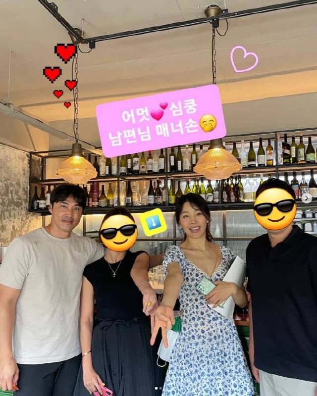 공개된 사진 속에는 김정임과 홍성흔이 지인들과 인증샷을 남기고 있는 모습.