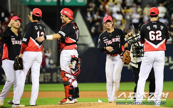 2022 KBO리그 두산베어스와 KIA타이거즈의 경기가 25일 서울잠실야구장에서 열렸다. KIA 박찬호와 선수들이 팀의 8대6 승리를 확정짓고 환호하고 있다. 잠실=최문영 기자 deer@sportschosun.com/2022.06.25/