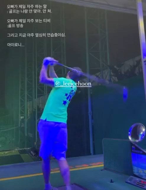 공개된 영상 속에는 인도어 골프연습장에서 열심히 연습중인 이지훈의 모습. 특히 마치 프로골퍼를 연상케하는 스윙을 선보이고 있다.