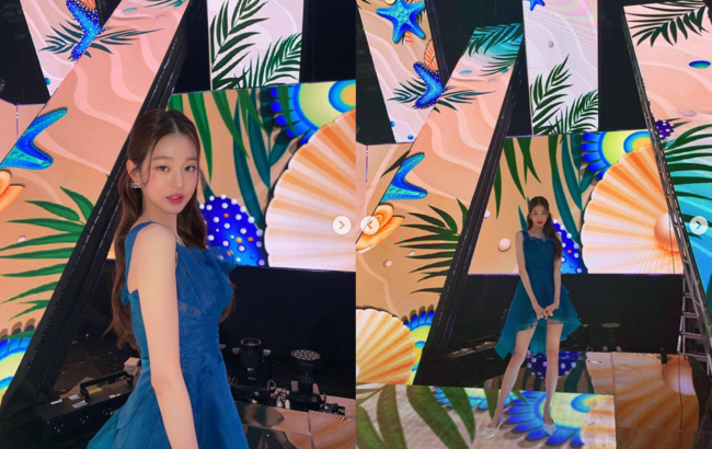 25일, 장원영은 자신의 SNS에 별 다른 멘트 없이 여러 장의 사진을 게재했다. 사진 속 그는 피부톤과 잘 맞는 블루 드레스를 입고 포즈를 잡는 모습. 그의 작은 얼굴과 대조되는 살벌한 팔다리 길이가 눈길을 끌었다.