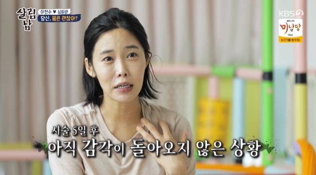 이천수가 몸 상태를 묻자, 심하은은 "안 좋은 것 같다. 감각이 안 돌아온다"라고 고백했다.