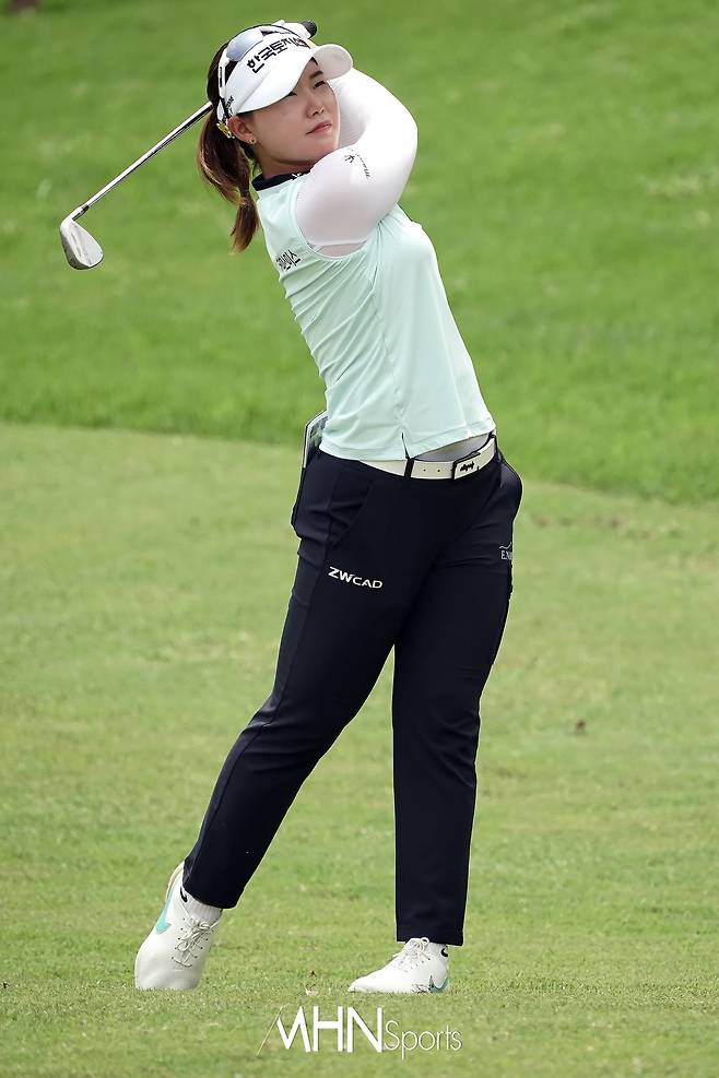 임희정(22.한국토지신탁)이 2번홀 세컨드샷을 날리고 있다.