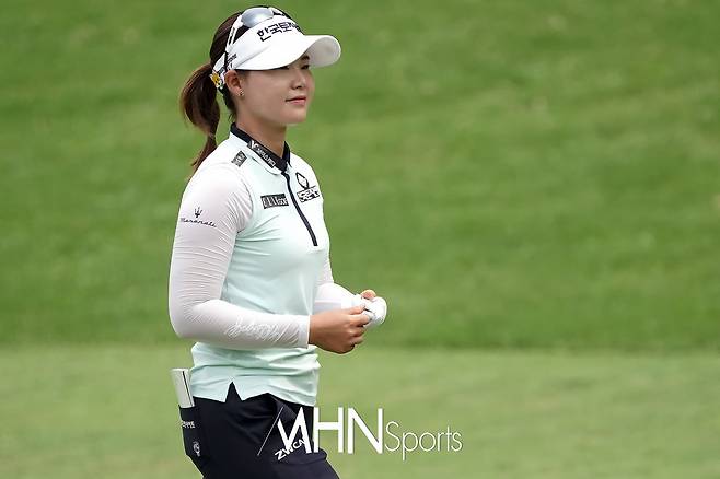 임희정(22.한국토지신탁)이 1번홀 그린으로 이동하고 있다.