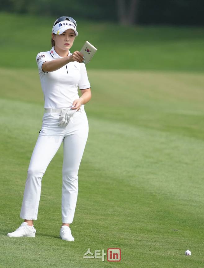 [이데일리 골프in=포천 조원범 기자]25일 경기도 포천에 위치한 포천힐스 컨트리클럽(파72. 6610 야드)에서 KLPGA투어 '비씨카드-한경 레이디스컵 2022(총상금 8억 원,우승상금 1억 4천4백만원)2라운드가 열렸다.한빛나의 5번홀 경기 장면.