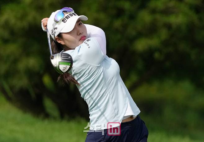 [이데일리 골프in=포천 조원범 기자]25일 경기도 포천에 위치한 포천힐스 컨트리클럽(파72. 6610 야드)에서 KLPGA투어 '비씨카드-한경 레이디스컵 2022(총상금 8억 원,우승상금 1억 4천4백만원)2라운드가 열렸다.성유진의 10번홀 경기 장면.