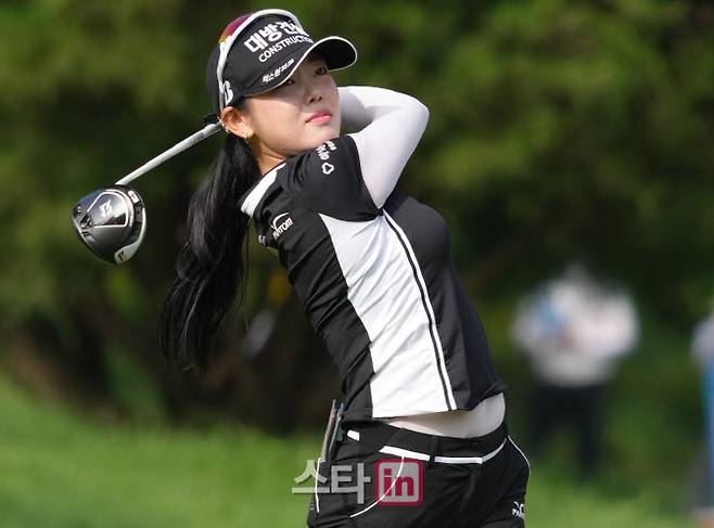 [이데일리 골프in=포천 조원범 기자]25일 경기도 포천에 위치한 포천힐스 컨트리클럽(파72. 6610 야드)에서 KLPGA투어 '비씨카드-한경 레이디스컵 2022(총상금 8억 원,우승상금 1억 4천4백만원)2라운드가 열렸다.현세린의 10번홀 경기 장면.