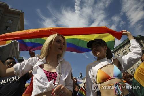 People take part in the 'Warsaw and Kyiv Pride' marching for freedom in Warsaw, Poland, Saturday, June 25, 2022. Due to Russia's full-scale war against Ukraine the 10th anniversary of the equality march in Kyiv can't take place in the usual format in the Ukrainian capital. The event joined Warsaw's yearly equality parade, the largest gay pride event in central Europe, using it as a platform to keep international attention focused on the Ukrainian struggle for freedom. (AP Photo/Michal Dyjuk)