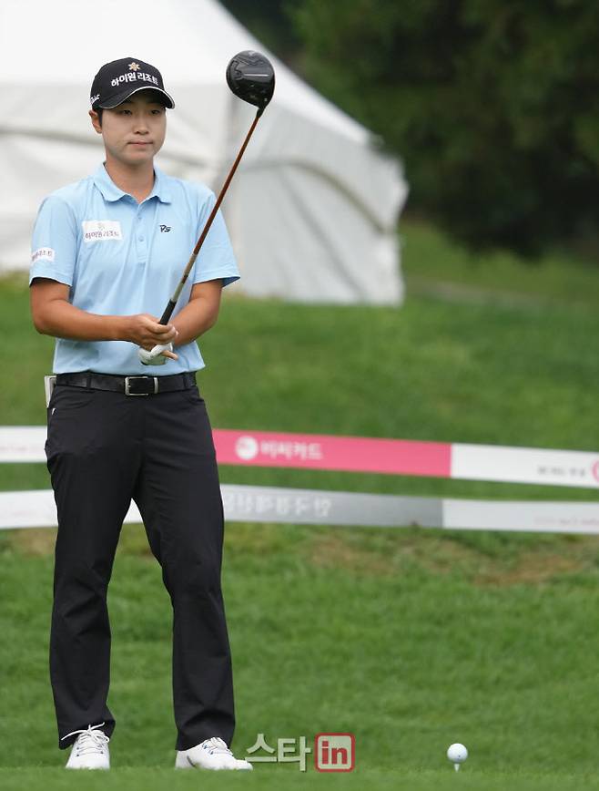 [이데일리 골프in=포천 조원범 기자]25일 경기도 포천에 위치한 포천힐스 컨트리클럽(파72. 6610 야드)에서 KLPGA투어 '비씨카드-한경 레이디스컵 2022(총상금 8억 원,우승상금 1억 4천4백만원)2라운드가 열렸다.김지수의 10번홀 경기 장면.