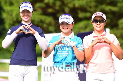 [마이데일리 = 포천 곽경훈 기자] 권서연,송가은,김민주(왼쪽부터)가 25일 경기도 포천힐스CC(예선 파72/6,610야드, 본선 6,506야드)에서 진행된 'BC카드-한경 레이디스컵 2022’(총상금 8억원·우승상금 1억4400만원) 2라운드 경기에서 포즈를 취하고 있다.- ⓒ마이데일리(www.mydaily.co.kr). 무단전재&재배포 금지 -