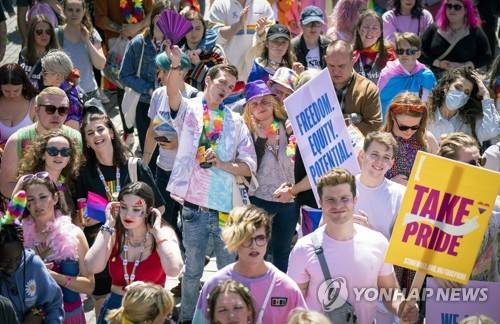 People take part in the Pride Edinburgh 2022 parade through Edinburgh city centre, in Edinburgh, Scotland, Saturday June 25, 2022, marking the 50th Anniversary of the Pride movement in the UK and the event's 25th Anniversary, which was originally scheduled for summer 2020. (Jane Barlow/PA via AP) UNITED KINGDOM OUT; NO SALES; NO ARCHIVE; PHOTOGRAPH MAY NOT BE STORED OR USED FOR MORE THAN 14 DAYS AFTER THE DAY OF TRANSMISSION; MANDATORY CREDIT