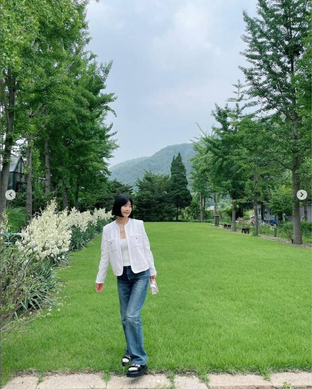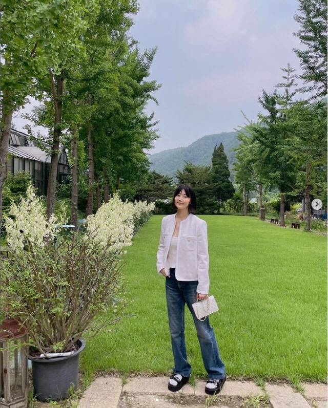 공개된 사진 속에는 흰 양말과 샌들 조합까지 완벽하게 소화한 한지혜의 모습이 담겼다.