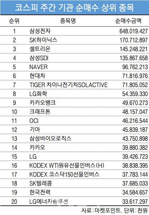 코스피 주간 기관 순매수 1위 '삼성전자'