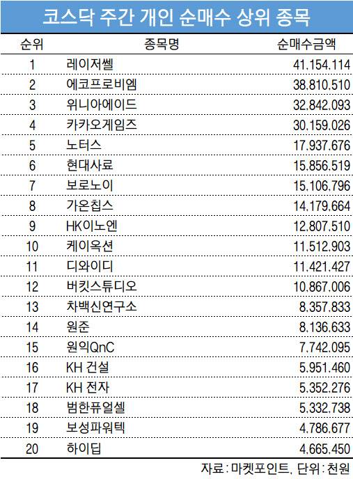 코스닥 주간 개인 순매수 1위 '레이저쎌'